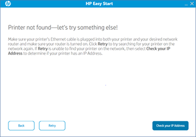 HP LaserJet Pro MFP 4101, HP LaserJet Pro 3001-3008, MFP 3101-3108, 4001-4004, MFP 4101-4104 - Printer not found displays when using HP Easy Start software