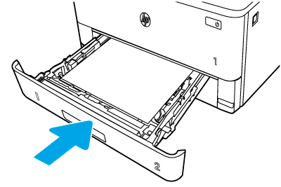 Load the paper into the tray. For information about how to orient the paper, see Tray 2 paper orientation.