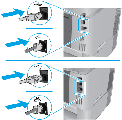 Connect the USB or network cable.