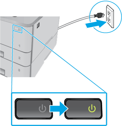 Reconnect the power cord to the outlet and then press the Power button to turn on the printer.